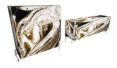 在魔幻電影里,黑色一定是“女巫”的代表色,那些從惡魔世界帶來(lái)的鏡子絕對(duì)是奇幻的道具,丑陋的女巫們?cè)诰碌溺R子前發(fā)問(wèn):“誰(shuí)是最美麗的女人?”邪惡的鏡子永遠(yuǎn)給出一個(gè)讓女巫們瘋狂的回答。如同用瀝青包裹的鏡框絕對(duì)帶有魔幻的味道,而鏡下的裝飾品則更似“女巫”們的玩具。 魔幻效果:★★★★