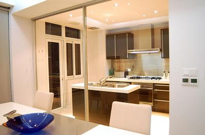 建議一:空間改造要巧 每個(gè)廚房空間在建筑時(shí)均會(huì)有防火墻或過(guò)頂梁等基本結(jié)構(gòu),對(duì)廚房隔墻改造時(shí),一定要考慮結(jié)構(gòu)的現(xiàn)有情況,做到“因勢(shì)利導(dǎo),巧妙利用”。如要改造的墻體上有過(guò)梁,可以保留此過(guò)梁,將它改造成“開(kāi)放式廚房”的吧臺(tái)燈光頂,而不能將它拆除,以免影響到建筑結(jié)構(gòu)的穩(wěn)定性。