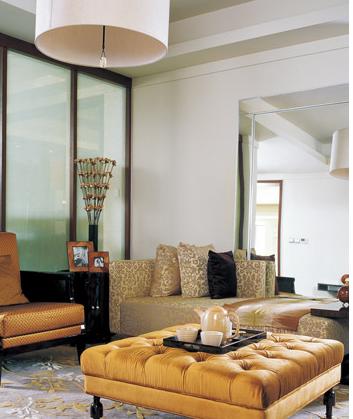 小有點(diǎn)綴勝于大肆鋪張。它的運(yùn)用是有選擇的,雖然只是小范圍的點(diǎn)綴,卻有極強(qiáng)的裝飾性,比如金黃色的靠墊、金黃色的桌墊、金黃色的墻面等等,也可以加進(jìn)一些西式的飾品,再配以深色家具,整個(gè)房間會(huì)頓時(shí)充滿生機(jī),色彩也變得豐富起來(lái)。由于金色是最輝煌燦爛的顏色,金色也是最具有能量和質(zhì)感的色彩,滿屋深調(diào)家具的厚重沉悶感不禁被一掃而光。