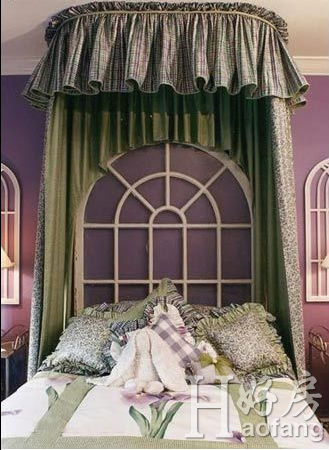 就一般床的構(gòu)造而言,床頭的高度欠缺氣 勢(shì)。因此,對(duì)床頭的那面墻有必要進(jìn)行特別的裝飾,如用板材或裝飾布等,裝飾出幾平方米的面 積;此外,用紡織面料制作的床頭的“床幔”,好似人的頭飾,大有可為,如用窗簾布垂掛、對(duì)開等造型,猶如給床戴上了花頭巾。