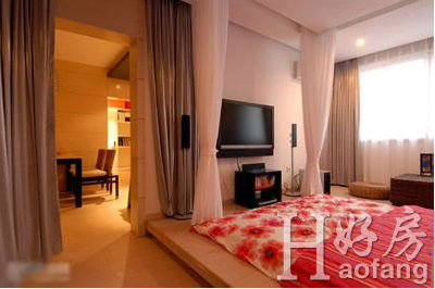 在擺放床的地域處,裝修出10公分左右高 的木質(zhì)“地臺(tái)”,相應(yīng)地選用較低矮的床。其效果是:使睡眠區(qū)的環(huán)境更為清潔;地臺(tái)烘托中的 床與人更有一種“精品”的藝術(shù)美感;尤其是花梨木質(zhì)的地臺(tái)還可給人以芬芳的氣息。