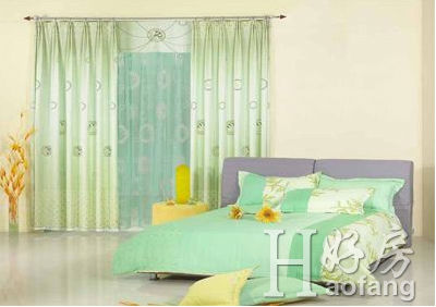 臥室中既然以床為中心了,其它飾物一般就應(yīng)有“退居二線”的 襯托意識(shí)。如窗簾,面積較大,太艷、太豪華了,就會(huì)與床飾形成兩個(gè)“中心”,以至讓人眼花 繚亂。故窗簾應(yīng)選用相應(yīng)一點(diǎn)兒的色彩、圖案、面料,像一個(gè)“仆人”站在床邊。