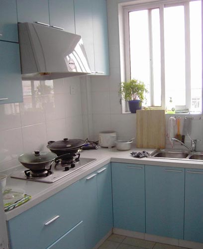 在廚房里烹飪最怕的是雜亂不堪。業(yè)界人士告訴記者,一般小家庭因為廚房大小有限都會選擇簡約風格的櫥柜,它既簡潔明快、干凈利落,又能將基本配置合理安排,以達到便利的效果。這種櫥柜大多是呈“一”字形,這是在走廊不夠寬,不能容納平行式設計的情況下經常采用的方法。有時候也可以用“L”形的樣式,這適用于廚房較大的情況,使廚房里的各種操作更加簡便。