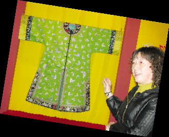清宮電視劇中,兩把頭扇形冠、旗袍和高跟木鞋,給人們留下了深刻印象。這些服飾真品,此次都一一展現。展廳正中是一件華麗的“百蝶衣”,因為慈禧喜愛蝴蝶。袁榮介紹說,后妃們穿的便裝叫氅衣,咸豐、同治期間,京城貴族婦女衣飾鑲滾花邊的道數越來越多,有“十八鑲”之稱。這種裝飾風尚,一直到民國期間仍流行。