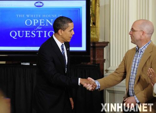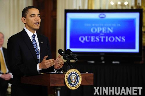 奧巴馬當(dāng)日在白宮首次以網(wǎng)絡(luò)視頻方式回答網(wǎng)友及現(xiàn)場民眾代表的提問。就業(yè)、醫(yī)療、教育、房貸等民生問題是當(dāng)日奧巴馬網(wǎng)絡(luò)答疑的重點。