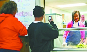 美國第一夫人到“米里亞姆廚房”做義工,不少流浪者拿出手機狂拍,讓來訪的人大感驚奇