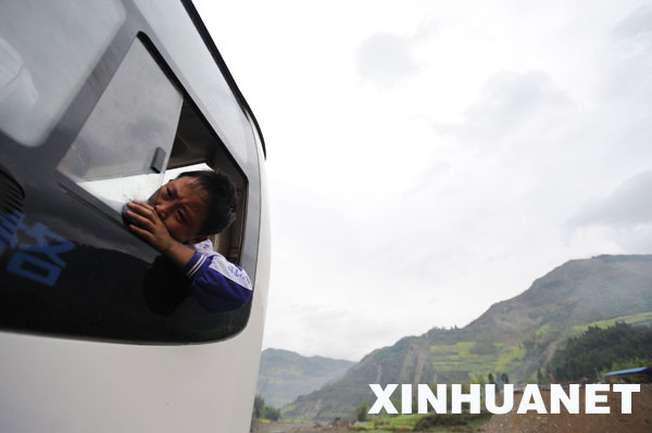 3月27日,在青川縣關(guān)莊鎮(zhèn)寺壩板房區(qū),六年級的學(xué)生楊永康灑淚離別故土。