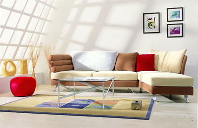 例如墻面為淺藍(lán)色,沙發(fā)則可選深藍(lán)色,抱枕則選用對(duì)比的橘色或沖突的紅色或是多色的圖樣。最好再加以一盆綠色喬木盆栽。大地色搭配永不失敗,因其來(lái)自自然界。