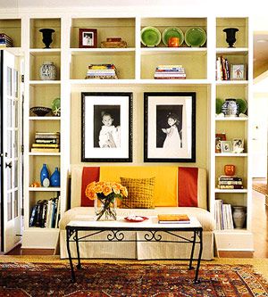 概要: 是不是覺(jué)得自己已經(jīng)把客廳中可收納的地方都用盡了。那不妨充分發(fā)掘你墻面的收納功能吧,一定會(huì)給你帶來(lái)很多的驚喜?!?。把整面墻利用起來(lái) 不要害怕把整面墻都用作為收納功能。利用柜子大小不一的尺寸巧妙進(jìn)行組合,并且可以在柜子的中央掛一副壁畫(huà),作為視覺(jué)的重心。這樣呢,既可以讓整個(gè)收納墻顯得賞心悅目,又避免了凌亂感?! ?。