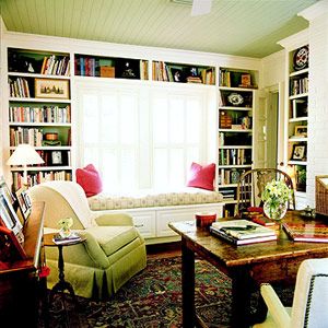 制作一個(gè)嵌入式的書(shū)架來(lái)作為窗框之用。當(dāng)主人坐在窗臺(tái)上時(shí),只要舉手之勞,就可以取書(shū)閱讀了。