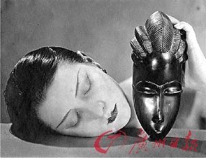 這是曼·雷的代表作《黑與白(NoireetBlanche)》。該作品攝于1926年,銀鹽相紙。這張經(jīng)典的超現(xiàn)實主義圖片,將曼·雷的情人——也是他的靈感女神——蒙巴納斯的琪琪那蒼白的面孔與黝黑的非洲部落雕刻面具放在一起,形成了鮮明的對比。在開幕前照片以60萬歐元賣給了一位歐洲藏家。