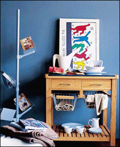 ●家具本身涂鴉。如果覺得家具本身有些單調(diào),可以利用涂鴉來改變。但是有一點需要注意,木質(zhì)家具的漆面會影響丙烯顏料的著色,不能長時間保存,容易被水侵蝕、脫色,可以在繪畫完成后再涂清漆,用漆膜將圖案封上。