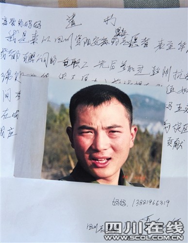 肖紅兵的照片和他寫(xiě)好的遺書(shū)。