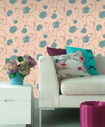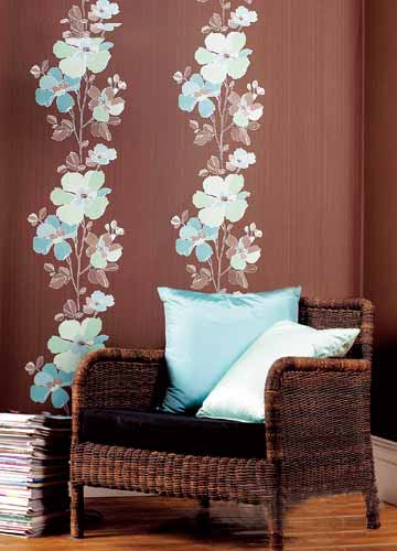 主體特征:大麗花、雛菊、罌粟、郁金香等輪廓柔美的花形開始升溫,立體花朵有所退潮,平面印染的方式使得大面積花朵更富新鮮的春夏氣息。因?yàn)樯嗜岷?,圖案唯美,這類壁紙適合使用在居室墻面的各個(gè)角落,顏色稍重的適合作背景墻,顏色稍淺的適合鋪滿整個(gè)墻面。絲絨纖維的壁紙材質(zhì),是表現(xiàn)大面積印花壁紙圖案的首選載體,不但后期更宜鋪貼,還具有環(huán)保耐損的特性。
