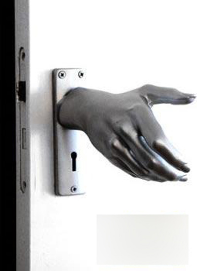 通常情況下,開門都會用到門把手??墒牵阌袥]有想過,如果真的把門把做成手的樣子,會是什么效果?