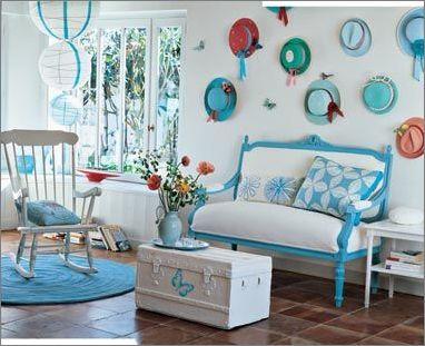藍(lán)色,是一種令人產(chǎn)生遐想的色彩。傳統(tǒng)的藍(lán)色常常成為現(xiàn)代裝飾設(shè)計(jì)中熱帶風(fēng)情的體現(xiàn)。藍(lán)色還具有調(diào)節(jié)神經(jīng)、鎮(zhèn)靜安神的作用。藍(lán)色清新淡雅,與各種水果相配也很養(yǎng)眼,但不宜用在餐廳或是廚房,藍(lán)色的餐桌或餐墊上的食物,總是不如暖色環(huán)境看著有食欲;同時(shí)不要在餐廳內(nèi)裝白熾燈或藍(lán)色的情調(diào)燈,科學(xué)實(shí)驗(yàn)證明,藍(lán)色燈光會(huì)讓食物看起來不誘人。但作為衛(wèi)浴間的裝飾卻能強(qiáng)化神秘感與隱私感。