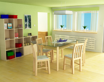 二是統(tǒng)一色彩基調(diào)。背陰的客廳忌用一些沉悶的色調(diào)。由于受空間的局限,異類的色塊都會破壞整體的柔和與溫馨。宜選用白櫸飾面,楓木飾面啞光漆家具,淺米黃色柔絲光面磚,墻面采用淺藍(lán)色調(diào)試一下,在不破壞氛圍的情況下,能突破暖色的沉悶,較好地起到調(diào)節(jié)光線的作用。