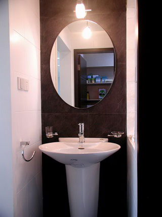 在寬大的衛(wèi)浴間里,干濕自然分離,良好的物理環(huán)境使得浴室柜有著充裕的容身之處。設(shè)計(jì)師可以根據(jù)使用者的功能要求和審美需求來放置不同形式的浴室柜,各種 洗浴用品、清潔用品以及衣物等分門別類地置放。另外,還可以根據(jù)家庭成員來分類,使每個(gè)人都有獨(dú)立的儲(chǔ)物空間,讓使用者更方便、衛(wèi)生。在只有四五平方米左右的小衛(wèi)浴間中,淋浴器、馬桶、洗臉臺(tái)已經(jīng)占據(jù)了不少面積,所以要做到干濕分離并不容易,消費(fèi)者要根據(jù)實(shí)際情況來選擇浴室柜。可選吊掛在墻角的或是離地面較高的浴柜,這樣往上層空間發(fā)展,也可以有效地利用起小空間。