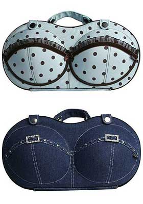 女孩子在旅游或出差時,一般都會攜帶幾個胸罩,直接把胸罩放到大皮箱中往往會壓變形,而有了這個專門放胸罩的包,隨身攜帶,最多可以放6個,足夠在外出期間更換。多種款式可選,售價在50美元左右。