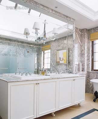 想讓衛(wèi)浴空間裝飾得另類、出彩,還可以考慮使用以下材料來制作浴室柜、洗面盆臺(tái)面等。用天然大理石作為浴室柜的臺(tái)面,要盡量避免唇膏等有顏色的化妝品涂到臺(tái)面上,這種有油性的顏色會(huì)滲透到石材里。