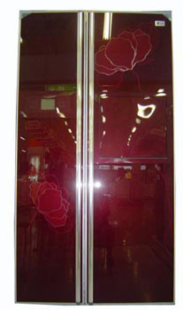LG GR-2274NRG冰箱,豪華紅色雙開門,牡丹花紋,尊貴典雅。而鑲嵌于門板和門把手的630余顆施華洛世奇水晶,則閃耀著無比的奢華與浪漫,同樣將婚房的喜氣烘托到頂點(diǎn)。