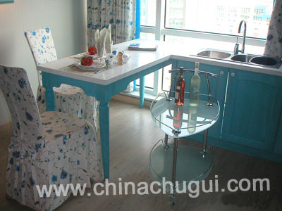 特色:清新淡雅,不僅讓整個(gè)廚房輕松、明快,更透出一份愜意、時(shí)尚的氣息。