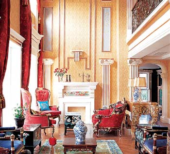 7.不管是如何使用金色,挑選的時(shí)候一定要通過(guò)很多樣品體會(huì)一下大面積使用時(shí)的效果以及和房間里其他家具配飾配合的效果,否則容易讓金色太跳。金色壁紙施工的時(shí)候要注意接縫的處理,一定要光滑無(wú)痕,使柱子成為一個(gè)金色柱子,是“體”的概念,而不是柱子或墻面上貼了金粉。