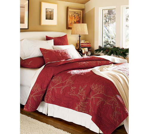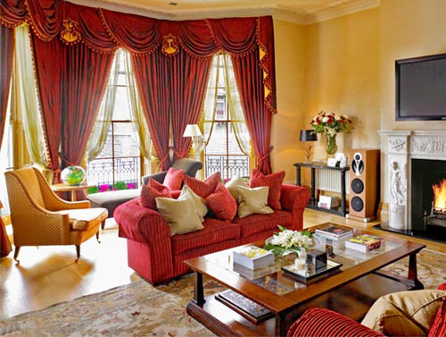 建議選擇紅色軟裝飾上使用,比如窗簾、床品、靠枕等,再用淡淡的米色或清新的白色搭配,可以使人神清氣爽,也能突出紅色的喜慶氣氛。