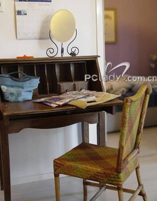 紅英家的臥室很值得一提,因為有很多她喜歡的元素在里面,例如這個由她自己DIY的燈罩,是油紙傘做成的;她還非常驕傲的給我看了臥室的窗簾,窗簾是一次去云南旅游時,買的一種特色的印染品,仔細看,上面的色調和臥室的色調如出一轍,上面的人物也打著油紙傘,最主要的是這一切本是無意的,沒想到確制造出這種統(tǒng)一的美。