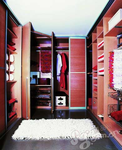 對(duì)于120平方米以上的大戶型,往往戶型結(jié)構(gòu)中都設(shè)計(jì)有衣帽間或儲(chǔ)藏間,步入式衣帽間可以按照不同的面積及格局進(jìn)行產(chǎn)品定做。