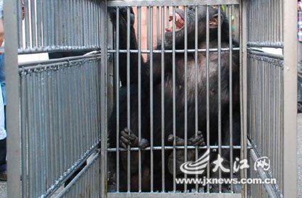 在被抬進手術(shù)室前,南昌動物園的黑猩猩“壯壯”躁動不安,不停嚎叫。