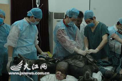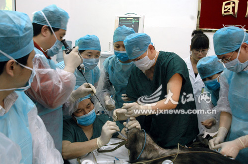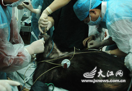 醫(yī)生圍著手術(shù)臺上的“壯壯”。