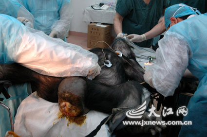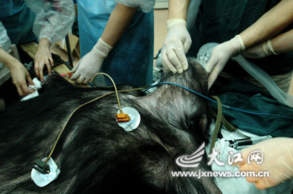 昌大一附醫(yī)院副院長王共先告訴記者,由于黑猩猩與人的構(gòu)造不一樣,給手術(shù)帶來了一定的麻煩。如插入輸精管時,剛一**去,卻發(fā)現(xiàn)不對,是尿道,不是**;還有,輸精管開始是按人用的長度標準使用的,后來發(fā)現(xiàn)短了。不過,這些小麻煩都被一一解決了。