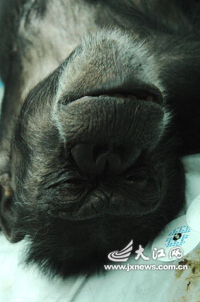 19時30分許,手術(shù)完畢。此時黑猩猩靜靜地躺在籠中,麻醉藥還未散去。