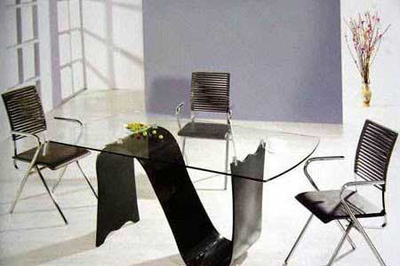 點(diǎn)綴:利用玻璃桌面反射的特點(diǎn),改變周?chē)h(huán)境的色彩和紋理,就能間接地改變餐桌的個(gè)性。色澤柔和的餐布和餐具,立即使這款過(guò)于理性化的餐桌椅變得溫馨起來(lái)。