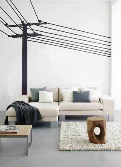 這是在家中嗎?電線桿的造型讓人有種恍惚的感覺(jué),這樣的壁紙也會(huì)為平淡的生活增加幾分情趣