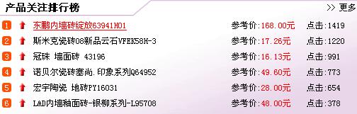 通過本周內墻磚產品關注排行榜不難看出,具有文化性和藝術性的瓷磚已經成為今春市場上最受歡迎的產品。東鵬的綻放系列、冠珠的藝術墻面磚、諾貝爾的塞尚·印象系列、L&D的銀柳系列,無一不是在藝術和文化上下足功夫。