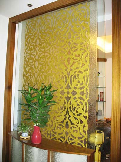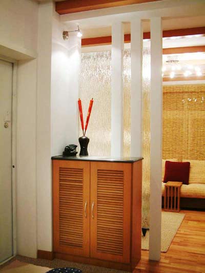 此外,還可以在門廳與客廳或衛(wèi)生間分界處,設(shè)計上一套屏風(fēng)或玻璃隔斷,,既保證了門廳的完整性,又減弱了空間的封閉感。