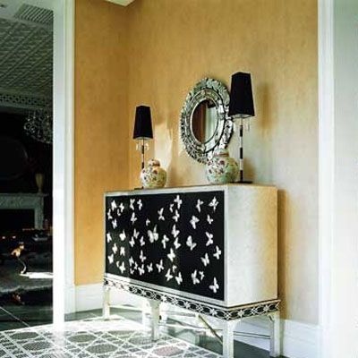 玄關(guān)若不以墻來作間格,用低柜來代替也行,其上選擇玻璃或通透的木架來裝飾。低柜可用作鞋柜或雜物柜,上面則可鑲磨砂玻璃,這樣既美觀實用,同時也符合下實上虛之道。