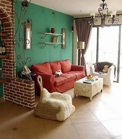 對比色具跳動感,紅墻綠沙發(fā),強(qiáng)調(diào)了沙發(fā)的形狀,很跳但容易看膩,一般建議不能多用,只能使用在重點(diǎn)區(qū)域。