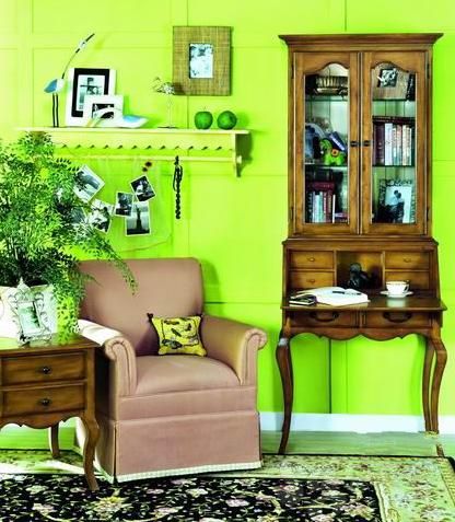 綠色糅合了明亮與新鮮,輕柔的感覺讓人感到自由自在,好像無拘無束地徜徉在鳥語花香中。它直接代表了大自然的神韻,綠色所代表的風(fēng)格基本上都偏向田園鄉(xiāng)村,代表一種舒適隨意的生活態(tài)度。淺綠、草綠、青綠色家具和飾品總能一下子吸引人們的眼球,讓人心生渴望。