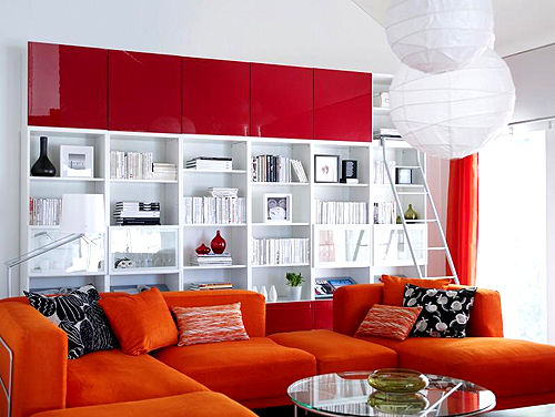 少用大型的酒柜,電視柜等家具,以使空間的劃分單純化,如果真的十分需要,則在角落放置好。多運(yùn)用盒子的收納性,將盒子貼上一致的包裝紙,可靈活擺放在客廳的各個(gè)角落。
