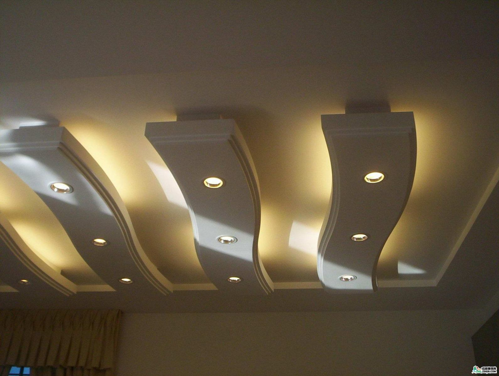 2、 四周做吊頂,中間不吊。此種吊頂可用木材夾板成型,設(shè)計(jì)成各種形狀,在配以射燈和筒燈,在不吊頂?shù)闹虚g部分分配上較新穎的吸頂燈,會(huì)使人覺得房間空間增高了,尤其是面積較大的客廳,效果會(huì)更好。