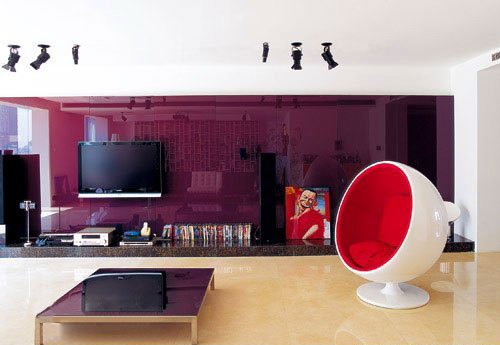客廳:視聽區(qū)域干 凈利落,沒有多余的修飾,充分突顯了刻意強(qiáng)調(diào)的功能。卸得多,裝得少 完全開放的空間里,四 白落地,素凈、淡然,卻有股凜冽的豪爽,大塊地磚將這種氣質(zhì)襯托得更加鮮明,背景墻雖然用了 紫色,依然與外部活動(dòng)區(qū)域保持感官上的統(tǒng)一。