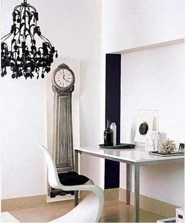 一條簡單的黑色長條色塊增加了角落的深 度,本來容易被忽視的角落反而成為了居室里的亮點(diǎn)。其它配飾的選擇除了顏色非黑即白之外,最 好選擇不同的材質(zhì)和質(zhì)地,這樣就會(huì)有既豐富又單純的效果。