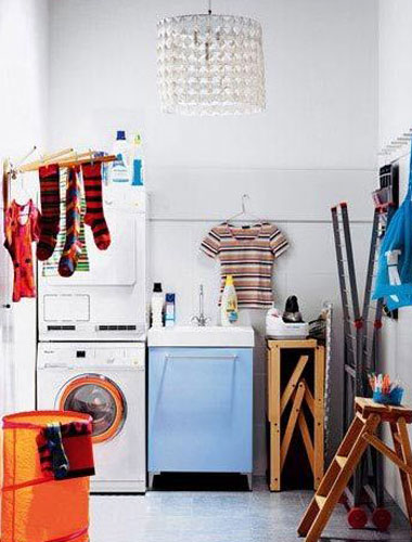 “家庭洗滌中心”的概念正在流行,獨(dú)立的洗衣房成為家里全新的空間。洗衣機(jī)和干衣機(jī)組合,讓洗衣這項(xiàng)家務(wù)勞動(dòng)變得更加專業(yè)。臟衣筐、晾衣架、熨衣板也有了棲身之地。在墻面上安裝一些衣架,小件衣服就可以晾在這里,避免其他空間的雜亂和擁擠。