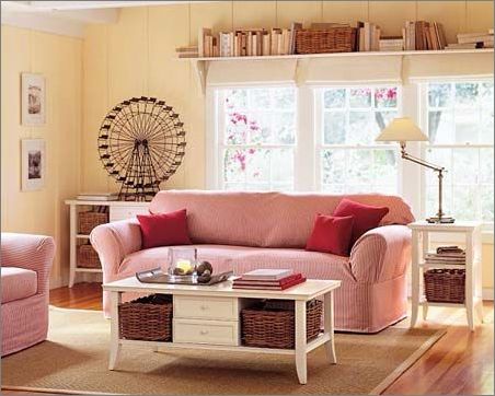 變身奧秘:沙發(fā)、靠枕、地毯 新造型閃亮登場(chǎng):粉紅色的條紋沙發(fā)讓客廳顯得時(shí)尚而不失大氣,大紅的靠枕提升了冬日的溫度,暖黃色的墻面破解了略顯沉悶的冬季氣氛,乳白色的茶幾與淡褐色地毯相呼應(yīng),如冬日的太陽(yáng),視覺(jué)柔和并散發(fā)著淡淡暖意。