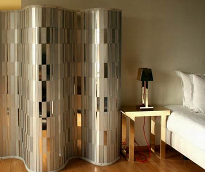 設(shè)計時尚的屏風(fēng),有時甚至比擺放在它前面的家具更加吸引目光。這類屏風(fēng)無論是材料還是設(shè)計都非常大膽、新穎。選料上,往往擯棄了那些厚重的材料,由透明、輕柔的材料所取代。以往屏風(fēng)主要起分隔空間的作用,而現(xiàn)在更強調(diào)屏風(fēng)裝飾性的一面,薄薄的屏風(fēng),既保持空間良好的通風(fēng)和透光率,營造出'隔而不離'的效果。