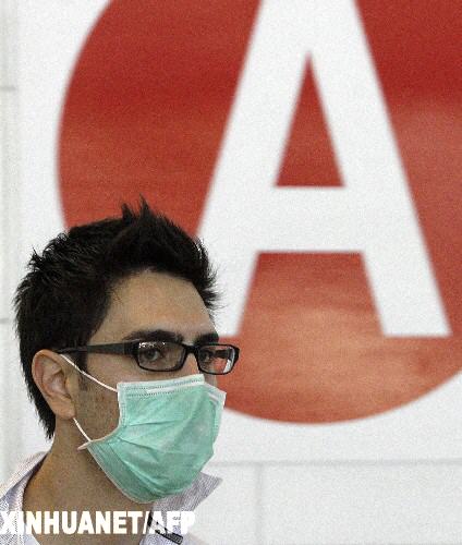 4月27日,在西班牙巴塞羅那,一名來自墨西哥的乘客戴著口罩抵達(dá)巴塞羅那機(jī)場(chǎng)。西班牙衛(wèi)生部27日確認(rèn)該國(guó)第一例人感染豬流感病例。 新華社/法新