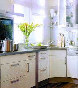 概要: 目前各樓盤的戶型,大多數(shù)的廚房面積都是3~4平方米,而我們的日用家電又越來越多,怎樣在有限的空間內(nèi)把這些家電和廚房用品都安置好。華潯品味裝飾設(shè)計(jì)總監(jiān)何志潮介紹,要把小面積的廚房變大可以考慮以下幾個(gè)方面:'借'空間;開發(fā)收納空間;把微波爐、冰箱等廚房用品放到餐廳處?! 〗杩臻g擴(kuò)空間 如果想要把廚房的空間擴(kuò)大,首先可以考慮向周圍的空間'借地方'。
